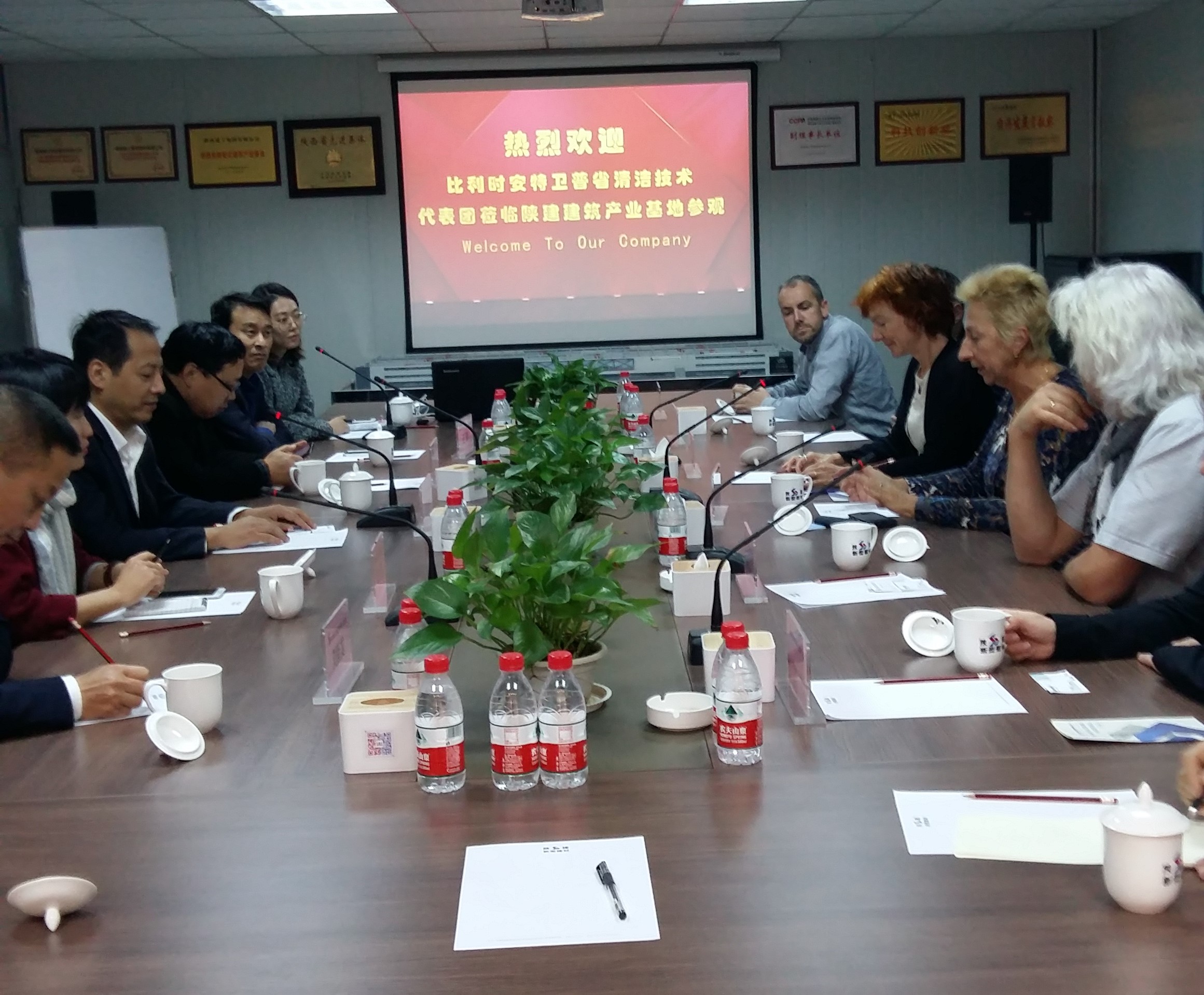 在隨后舉行的座談會上,來訪團(tuán)觀觀看了基地建設(shè)視頻和交大創(chuàng)新港15號樓的安裝視頻,形象地了解了我司在裝配式建筑方面的發(fā)展情況。清潔技術(shù)協(xié)會主任Carine Van Hove女士表達(dá)了感謝之情,希望在今后清潔能源和綠色建筑的領(lǐng)域之內(nèi)可以和新型建材建立緊密合作。