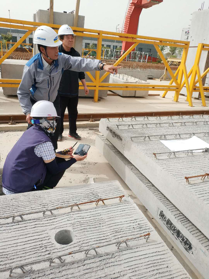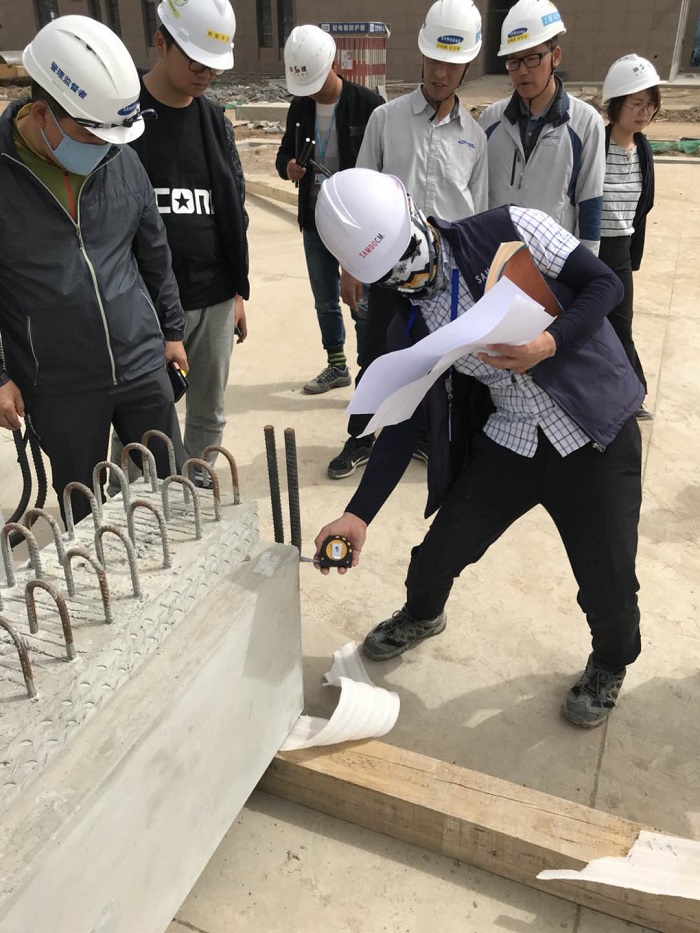 本次共驗收各類構(gòu)件52件,均一次性通過。驗收組由三星電子品質(zhì)部、韓國三友綜合建筑事務所、誠信監(jiān)理、中建五局共同組成。驗收組嚴格按照驗收標準,對構(gòu)件的尺寸標準、外觀質(zhì)量、技術文件等方面進行了全方位的檢查,驗收組一致認為所驗產(chǎn)品符合技術質(zhì)量要求,相關質(zhì)量證明文件交付齊全有效,驗收合格。