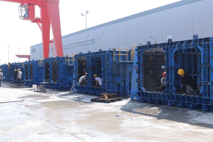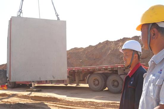 作為省內(nèi)首個裝配式綜合管廊試點建設(shè)項目,項目在建設(shè)過程中一開始就面臨著安裝難度大、建設(shè)任務(wù)重、工期時間緊等困難,為圓滿完成項目任務(wù),陜建投資集團和新型建材公司領(lǐng)導高度重視、協(xié)同聯(lián)動、齊心攻堅;公司精心部署安排,在組模、澆筑、蒸養(yǎng)、拆模、驗收等環(huán)節(jié)上科學組織,19套模具每天制造28個成品,大大提高了模具的利用率,為按期安裝完工奠定了堅實的基礎(chǔ)。