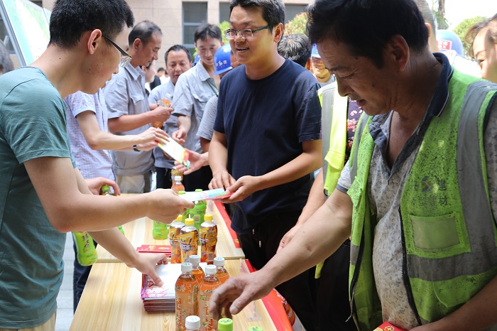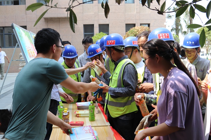 活動現(xiàn)場廣大員工來到咨詢臺,對自己不了解的問題進行咨詢,并且積極參加安全生產(chǎn)燈謎答題活動。參加活動的員工或在拿著安全生產(chǎn)燈謎認真思索著答案或?qū)χ鴪D片展板看看哪里有隱患,通過活動,更加加深了員工對安全知識的了解和掌握,隨后,公司深入車間和一線職工中發(fā)放宣傳資料,與職工面對面互動交流,宣講安全生產(chǎn)方針政策,普及安全生產(chǎn)法律、法規(guī)和安全知識,同時開展了“送清涼囑安全”慰問活動,為員工發(fā)放了清涼飲料及防暑降溫用品,叮囑大家時刻注意安全,為安全生產(chǎn)再做新貢獻。