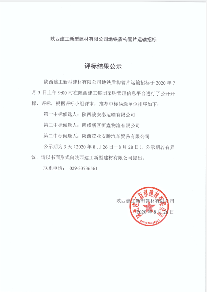 | 陜西建工新型建材有限公司地鐵盾構(gòu)管片運(yùn)輸招標(biāo) |