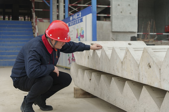 8:30,崔正昊到達(dá)西安高新區(qū)興隆安置性商品房A區(qū)項(xiàng)目建安工程一標(biāo)段,對(duì)接供貨期間的售后服務(wù)統(tǒng)籌、管理工作,了解項(xiàng)目需求。一到項(xiàng)目,崔正昊便與甲方監(jiān)理驗(yàn)收剛從公司運(yùn)來(lái)的預(yù)制樓梯,核對(duì)資料,確定樓梯吊裝順序;跟項(xiàng)目技術(shù)總工了解疊合板和施工進(jìn)度;溝通生產(chǎn)供貨時(shí)間,保證根據(jù)施工進(jìn)度按時(shí)供貨到場(chǎng),做到讓客戶滿意。