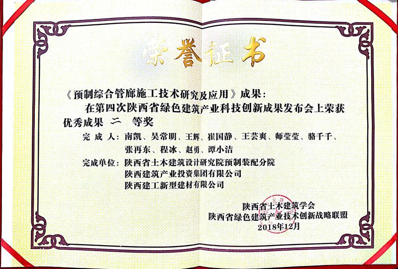 | 我司實施的兩項科技成果榮獲第四次陜西省綠色建筑產(chǎn)業(yè)科技創(chuàng)新成果發(fā)布會優(yōu)秀成果二等獎 |