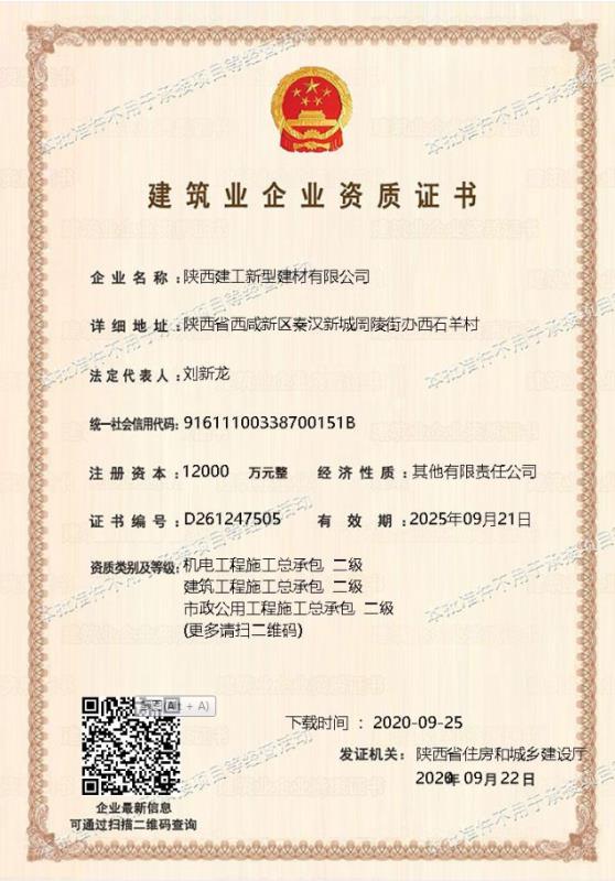近日,陜建新型建材傳來喜訊,公司成功取得建筑工程、機(jī)電工程、市政公用工程施工總承包、鋼結(jié)構(gòu)工程專業(yè)承包二級資質(zhì)證書,該資質(zhì)的取得,將有助于進(jìn)一步擴(kuò)大公司的業(yè)務(wù)范圍和經(jīng)營規(guī)模,提升公司的競爭力和更廣闊的發(fā)展空間。